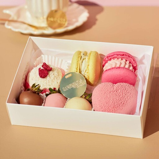 Муссовое сердце с клубникой 1шт; Клубника в молочном, белом и клубничном шоколаде 3шт; Моти Малина-кокос и Манго-маракуйя (вкусы могут меняться, в зависимости от наличия на день поставки) 2 шт; Макарон Мак-лимон и Клубничный йогурт(вкусы могут меняться, в зависимости от наличия на день поставки) 2 шт;