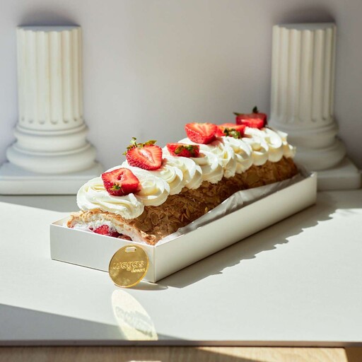 Воздушный рулет с крем чизом и свежей клубникой.